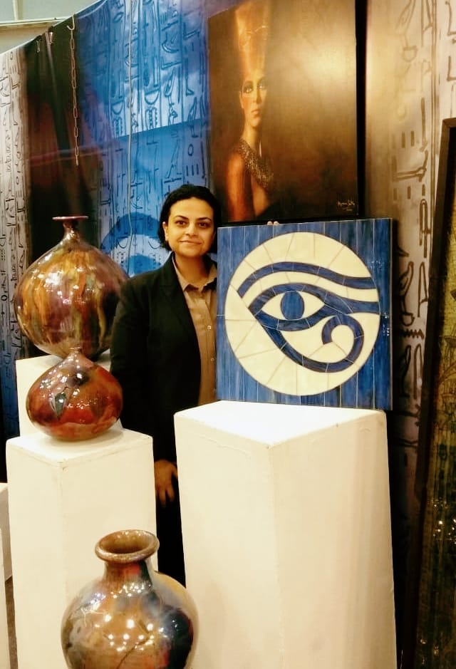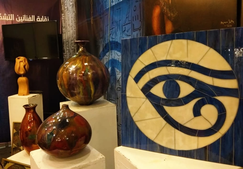 ورغم أن حيز المعروضات لم يكن كبيرا إلا أن كل جزء أو عمل صغير يعبر عن قصة وقدرة كبيرة لمصممه وصانعه، ومما لفت النظر بالمعرض عمل فني رائع بلوحة مربعة اقرب لمقاسات البلاطات البورسلين الكبيرة وهي بإمضاء الفنان والمصور العالمي (ايمن لطفي)، واللوحة بعنوان (الملكة نفرتيتي)، واللوحة تخطف البصر بمجرد ان يدركها، كما لفت النظر بعض اللوحات الفنية المميزة والمبتكرة من حيث التصميم والتنفيذ للفنانة (د. رانيا علام)، كذلك لفت النظر بعض لوحات (الموزايك) للفنان (سامي عطية) والفنانة (رندة نورالدين) والتي شكلت شعار النقابة (عين حورس) بلوحة مربعة متقنة الصنع من الزجاج المعشق، والعمل النحتي الرائع للفنانة أ.د. (رقية الشناوي).