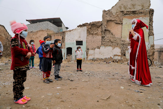 ماما نويل.. طالبة ترسم البهجة على وجوه أطفال الموصل بعد إرهاب داعش.. (صور)