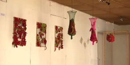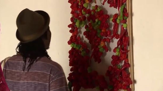 أطلق فنان نيجيري، اسمه أولوفيلا أوموكيكو، معرض فني يشجع الناس على الانصياع لإجراءات الوقاية من فيروس كورونا، اللافت أن المواد التي استخدمها لم تكن لوحات خشبية أو ألوان زيتية، بل استخدم حبات الطماطم والفلفل الطازج.