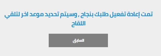 8- ستظهر رسالة تمت إعادة تفعيل طلبك بنجاح.. وسيجرى تحديد موعد أخر لتلقي اللقاح.
