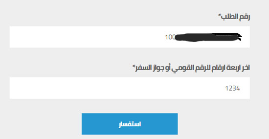 3- إدخال رقم الطلب وأخر أربعة أرقام للرقم القومي أو جواز السفر.