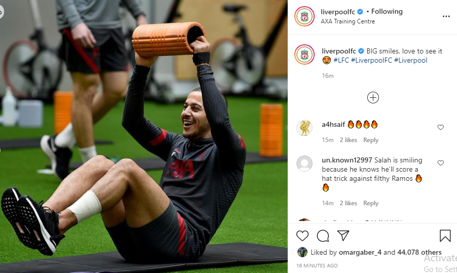 ونشر حساب ليفربول صورا أخرى من التدريبات الخاصة بالنجم محمد صلاح على أرضية الملعب، وكذلك التمارين البدنية الشاقة بالأثقال.