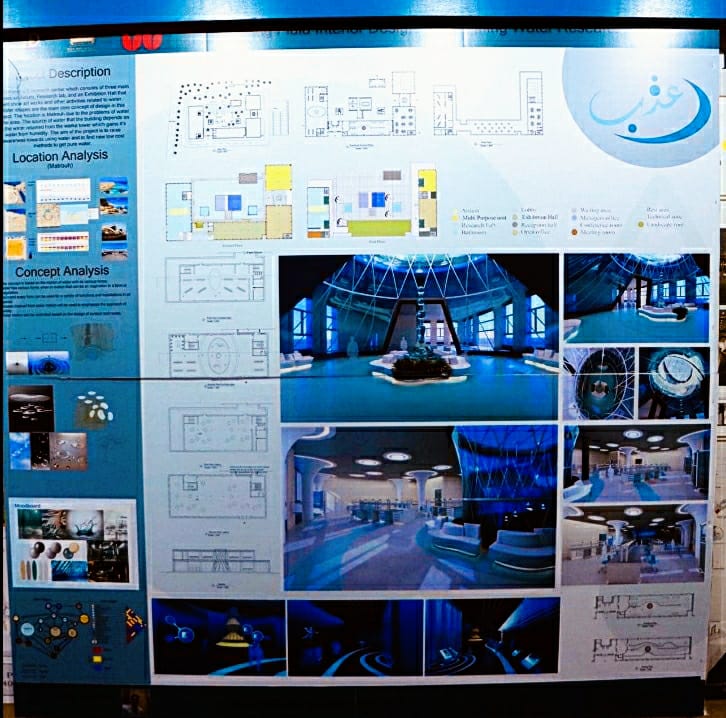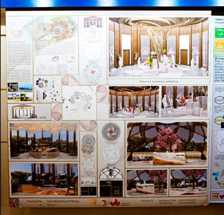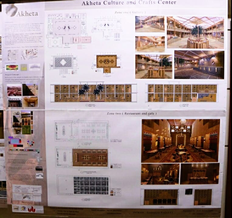 اشتمل المعرض على مشروعات لطلاب التصميم الداخلي، والسينما والمسرح، وتصميم الأزياء، وتصميم الجرافيك ووسائل الإعلام، و أصدر مجلس نقابة الفنانين التشكيليين على صفحته الرسمية خبرا عن الفاعلية جاء فيه أن زيارة رئيس الشعبة أتت في إطار إهتمام شعبة الديكور – نقابة التشكيليين – بمحور التعليم والتدريب وجودة الخريج مع مواكبة التطور والتحديث المستمر في مجالات العمارة الداخلية والسينوجرافيا.