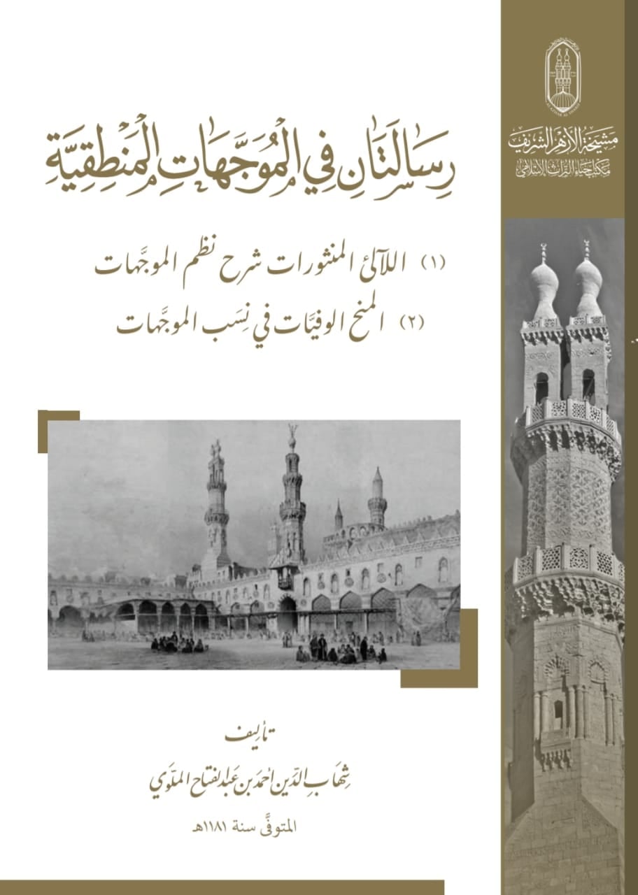 9- رسالتان في الموجهات المنطقية، من تأليف العلَّامةُ أحمد الملَّويُّ (ت.1181هـ)، ويشمل الكتاب رسالتين في مبحثٍ مِن أهمِّ المباحثِ وأدقِّها في عِلمِ المنطقِ وهو «مبحث الموجَّهات» الذي اعتنى به كثيرٌ من المتأخِّرين، والرسالتان هما: «اللَّآلئ المنثُورات شرح نظمِ الموجَّهات» وهو شرحٌ على نظمِه للموجَّهات، تكلَّم فيه على أصولِ الجِهات، وأقسامِ القضايا الموجَّهةِ، ثمَّ تكلَّم في أحكامِ القضايا من حيثُ التَّناقُضُ والعكسُ. الرسالة الثانية: «المِنَح الوفيَّات في نِسَبِ الموجَّهات» عقدَ فيه مقارنةً بين القضايا الموجَّهةِ ليخلُصَ منها بذكرِ النِّسبِ بينها، مع ذكرِ الأمثلة الموضِّحةِ لها، وقد جرى فيه على أنَّ الموجَّهاتِ تسعةَ عشَرَ.