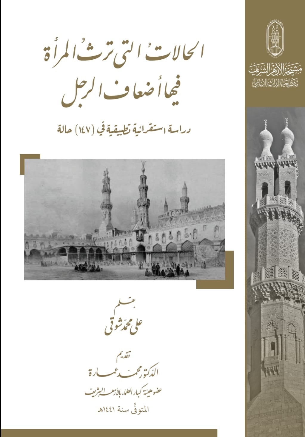 4- كتاب “الحالات التي ترث المرأة فيها أضعاف الرجل- دراسة استقرائية تطبيقية في (147) حالة”، بقلم علي محمد شوقي، ويَعرِضُ المؤلف في كتابه استقراءً لأبواب علم المواريث، مُحدِّدًا المواطنَ الَّتي رُجِّحت فيها المرأةُ على الرَّجل في الميراث، والمواطنَ الَّتي انفردت بها من دون الرَّجل، والمواطنَ الَّتي شاركته فيها، ثمَّ يَعرِضُ في «مباحثِه الثَّلاثة» -تطبيقيًّا- (147) حالةً يتفرَّع عنها (623) صورةً، تَرِثُ فيها المرأةُ المسلِمةُ ضِعفَ الرَّجل، وثلاثةَ أضعافِه، وأربعةَ أضعافِه، وستَّةَ أضعافِه، وثمانيةَ أضعافِه، واثني عشر ضِعْفَه.