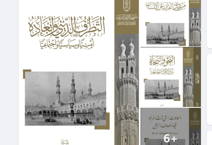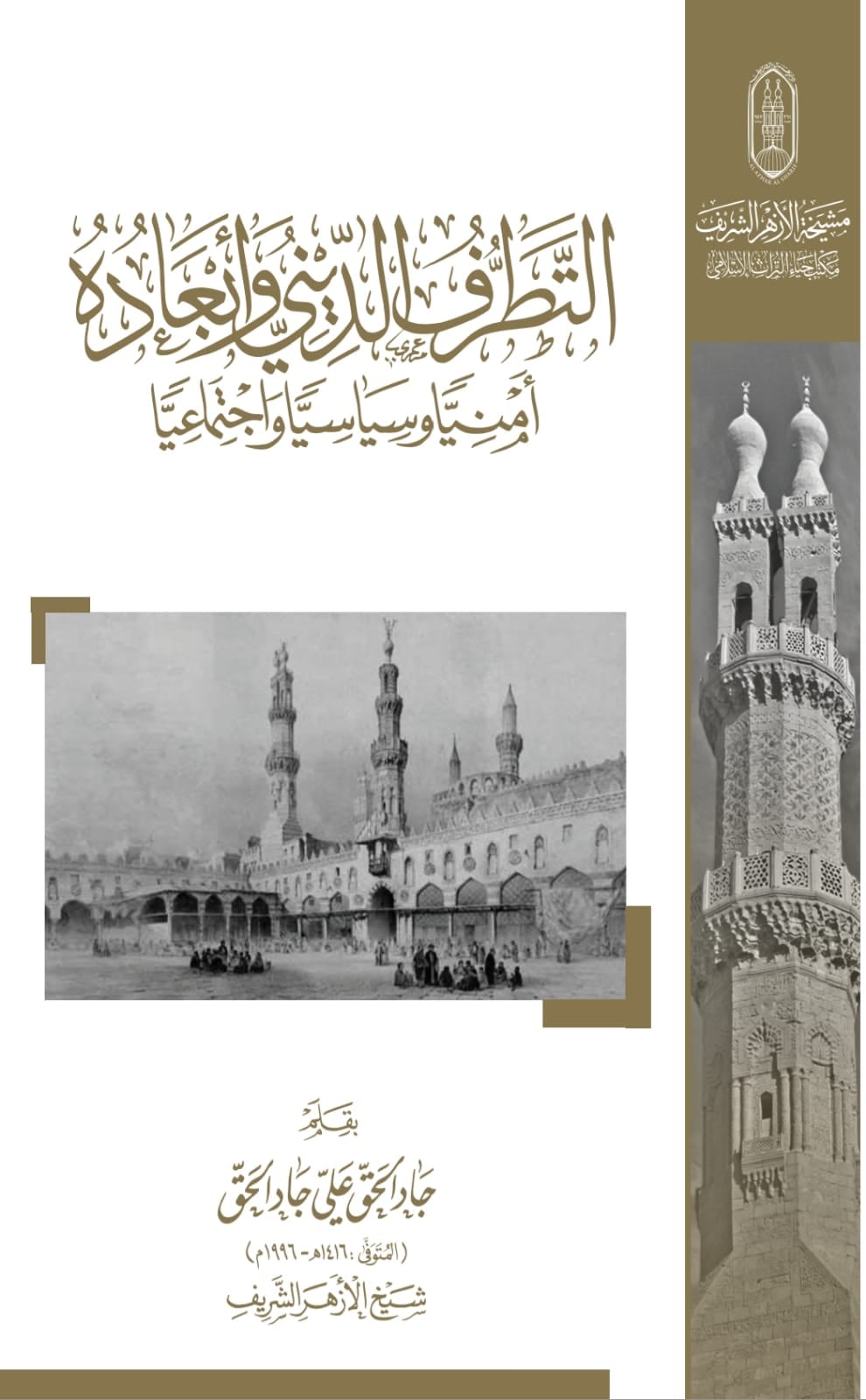 1- كتاب “التطرف الديني وأبعاده أمنيًا وسياسيًا واجتماعيًا”، بقلم شيخ الأزهر جاد الحق علي جاد الحق، ويعرض فيه الإمام الأكبر ظاهرة التَّطرُّف الفكريِّ بناحيتَيه الدِّينيَّة واللَّادينيَّة؛ باعتبارها ظاهرة يتحلَّل فيها المتطرِّف مِن كلِّ قَيْد، ويفرضُ مِن خلالها رأيَه بالعنف، مُبتعِدًا عن قِيَم الأديان ومبادِئها السَّمْحة، ثمَّ يُبيِّن أنَّ الإسلامَ عَقَبةٌ كَؤُودٌ أمامَ هذه التَّيَّاراتِ المتطرِّفة جميعًا، وفي الختامِ أوصى الإمامُ بعدَّة مقترَحاتٍ ووصايا؛ للوقايةِ مِن التَّطرُّفِ ومواجهتِه بجميع أنواعه.