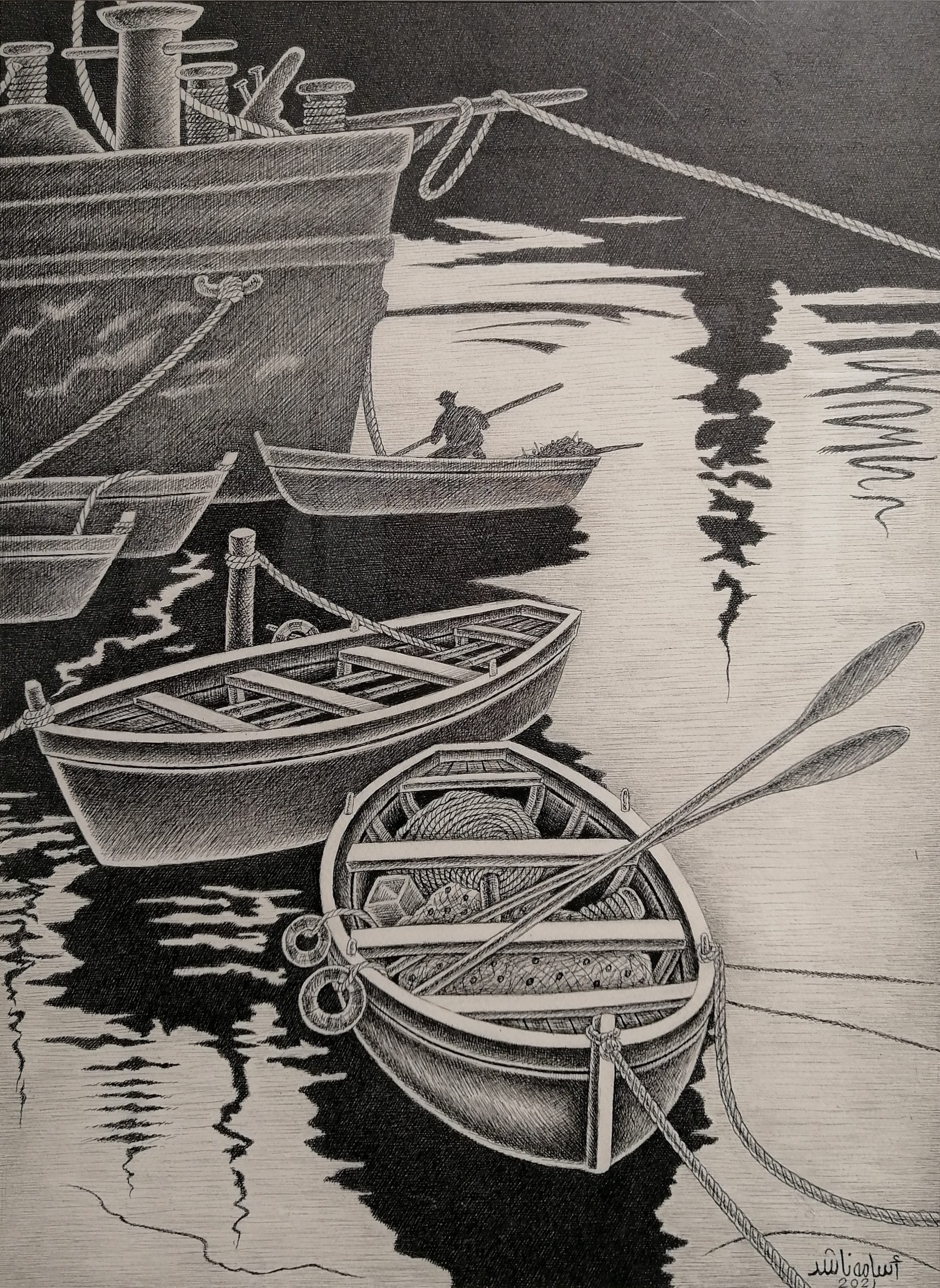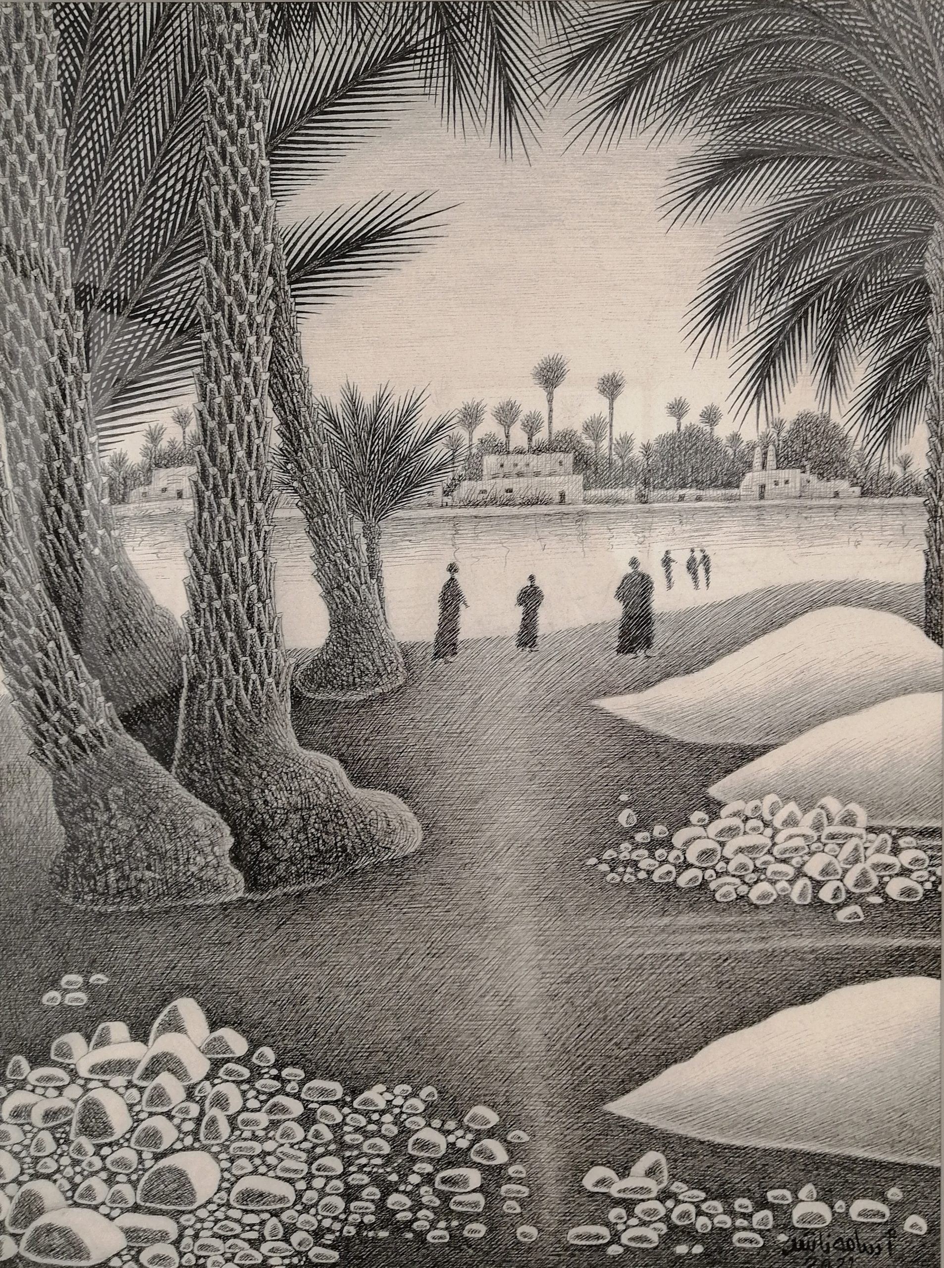 يُعد الفنان “أسامة ناشد” أحد أبرز الفنانين المصريين الذين ينتمون إلى اتجاه الرسم بالحبر الأسود، مُحافظاً على هويته وراسماً مشاهد من الطبيعة المصرية، مستلهماً الجمال من تفاصيلها ومستخدماً دلالاتٍ بصرية من عناصرها في تكوين لوحاته.